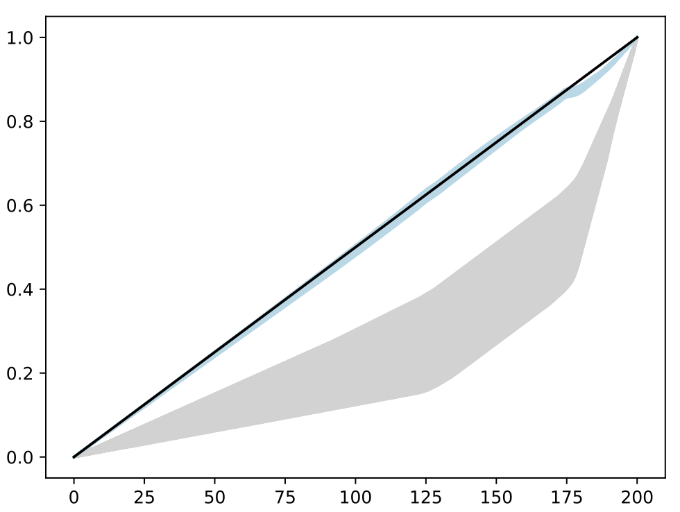 Can compute distance on warping functions (how much alignment) \[d_p(\gamma) = \arccos\left(\int_0^1\sqrt{\dot{\gamma}}\,dt\right)\] ![]()