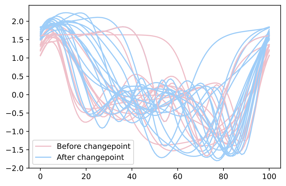 - The standard changepoint problem assumes the data is from the following model: \[f_i = \mu + \delta \mathbb{1}(i > k^*) + \epsilon_i\]